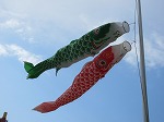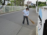 鯉のぼりが自由に泳ぎ、春爛漫の花が香り、先生方の清掃が進みます