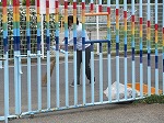 幼稚園では、いつも通り園児を迎えるための準備を万端にしています