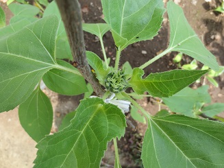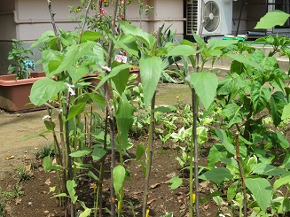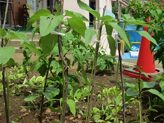 このところの暑さに、急に大きくなり始めました。桜の枝を補助として使い間もなく咲きそうです。みんなも、ひまわりのように元気いっぱいに遊びましょう。