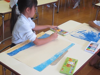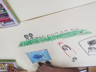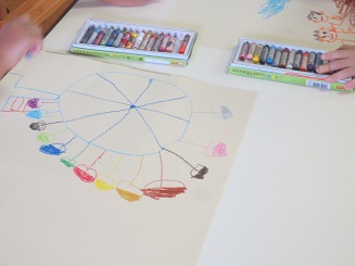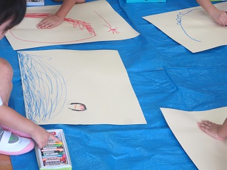 記憶も新しい本日、さくら組・きりん組さんたちがそれぞれに夏休み中の思い出を絵を描きました。