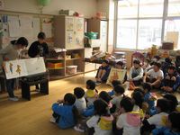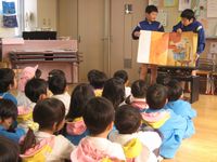 今年度2回目になりますが、2月16日(金)花園小図書委員会の5年生が幼稚園児に絵本を読み聞かせてくださいました。今回は年中児パンダ組さんでした。大きな絵本を一生懸命読んでくださる姿やお話しの内容もぴったりだったため、すっかりお話しにのめりこんでいました。有難うございました。