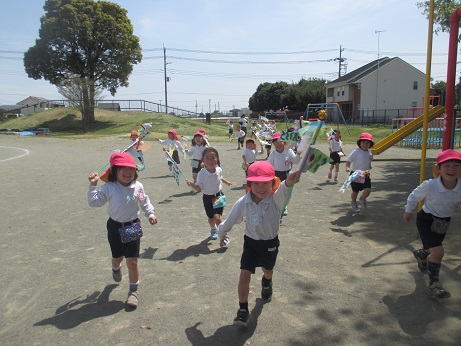 4月26日(金)で、4月の登園が終わりました。明日から、10日間の大型連休に入ります。5月5日の「こどもの日」に合わせて、どのクラスもこいのぼりを製作しました。日本の四季折々の伝統的な行事をしる良い機会でもあります。こいのぼりのように元気に育ってほしいと思います。長いお休みですが、どうぞ大切にお過ごしください。5月7日(火)にみんなに会えることを楽しみにしています。