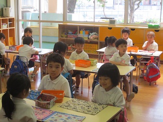 教室では、静かに待ちます。姿勢のよい子がたくさんいます。