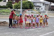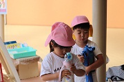 今日も暑い日です。でも園児たちは、元気に活動しています。そして明日は園児たちが楽しみしていた親子ふれあい祭りです。初めての4歳児ぱんだ組のみんなの盛り上がりは、絶好調です。