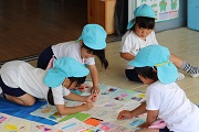 「まん延防止等重点措置」の延長を受け、例年実施しております保育参観の持ち方の変更にご理解いただき感謝いたします。22日に分散型保育参観の計画表を配布しました。第一希望を優先に計画表を作成しましたが、思い通りにならなかった保護者の皆様のご理解に感謝いたします。参加人数を踏まえ三密を考え計画表を作成したことにご理解下さい。参加に際しましては、配布しました健康確認票の提出をお願いいたします。