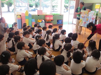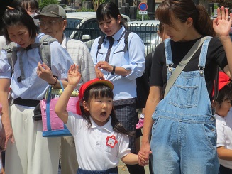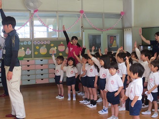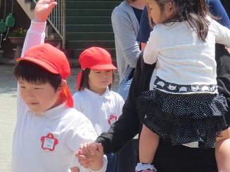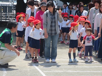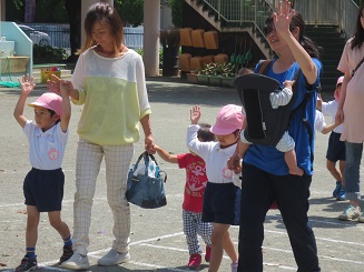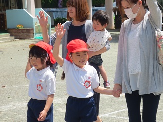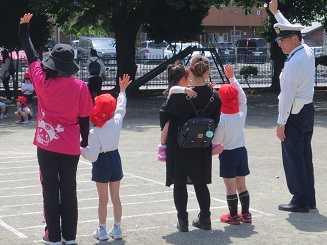 最後に、三本指のお約束、横断歩道の渡り方を再確認として園児と保護者で実施しました。 その他連絡