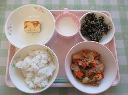 ソイ丼 かきたま汁 バリバリサラダ 牛乳
