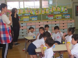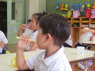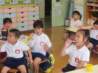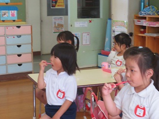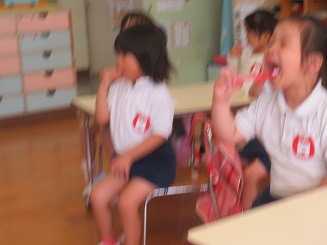 牛乳洗いの片付けが終わると次は歯磨きタイムです。