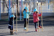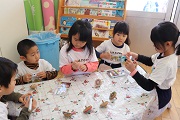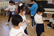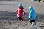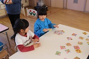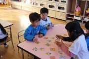 朝から暖かいよい天気になりました。3学期が始まり3日目です。園児たちは、朝から元気に外に出て、遊び活動をしています。縄跳びをしたり、竹馬乗りをしたり、バトミントンをしたりしながら朝の活動を開始しました。その後、部屋に戻り、ばら組のみんなは、こま回しの練習を始めました。ぱんだ組のみんなは、かるたを楽しみました。どれもこれも日本の伝統的な遊びです。経験・体験し、これからもよい伝統を引き継いでいけるといいですね。