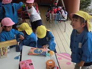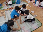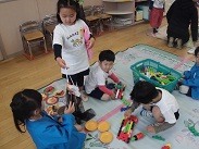 久しぶりに寒い朝になりましたが、園児たちは今日も元気です。保育室に荷物を片付けると直ぐに園服を脱いで遊び開始です。