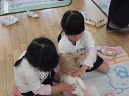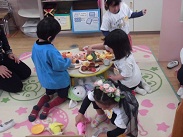5歳児ばら組は外で元気に、4歳児ぱんだ組は室内で思い思いに遊んでいます。