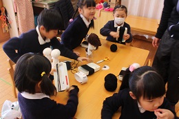 2月20日(月)、廊下に表情豊かなひな人形が並びました。まるで、ひそひそとお話しているように体を寄せ合ったり、個性的で見ていて楽しくなります。もうすぐひな祭り、その時には、保護者の方々にもみていただきます。楽しみにしてください。