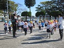 園庭にみんなが集まって心をひとつにします
