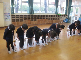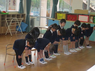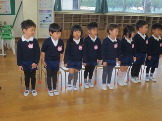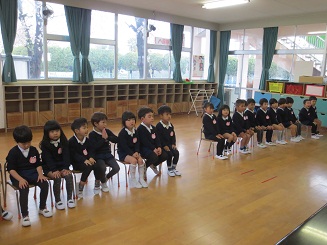明日を背負って立つ 年長組さんは明日の練習、最後のリハーサルです。明日の幼稚園を背負って立つ年長さん、国歌・深谷市歌、上手に歌えました。皆さんの歌声に入園式はかかっています。きりん組さんを歓迎しようという一生懸命な声が聞こえました。