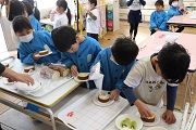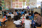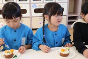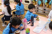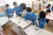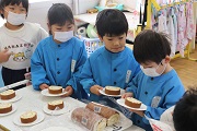 今日は朝からクリスマスケーキづくりをしました。担任の先生が用意したロールケーキにフルーツをトッピングしたり、ホイップクリームをのせたりして、自分のケーキを思い思いにデコレーションして食べました。自分で作ったケーキは、おいしかったのか全員、完食しました。こんな活動を通して、またみんなの絆が深まっていきます。