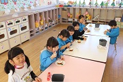 「まん延防止等重点措置」の延長を受け、例年実施しております保育参観の持ち方の変更にご理解いただき感謝いたします。22日に分散型保育参観の計画表を配布しました。第一希望を優先に計画表を作成しましたが、思い通りにならなかった保護者の皆様のご理解に感謝いたします。参加人数を踏まえ三密を考え計画表を作成したことにご理解下さい。参加に際しましては、配布しました健康確認票の提出をお願いいたします。