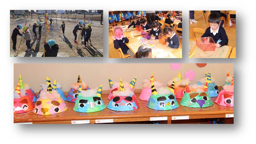※写真は今日の子どもたちの様子と年中児の鬼です。