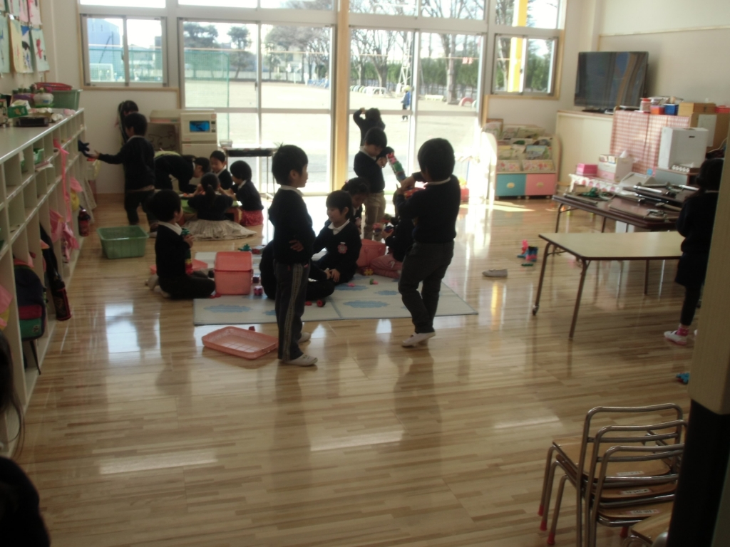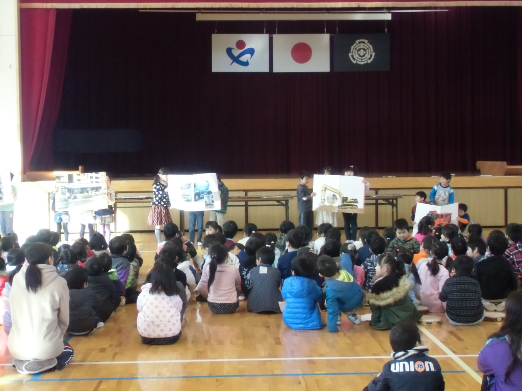 年長組が、1年生と一緒に小学校の様子を学びました。