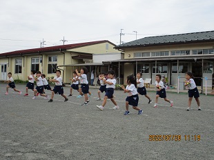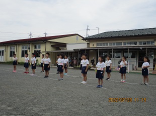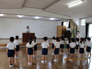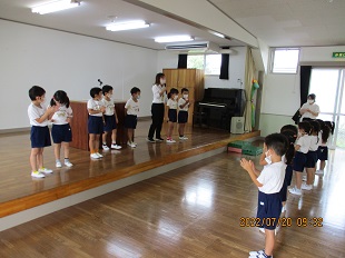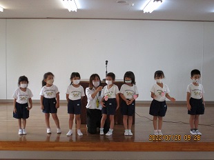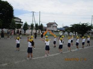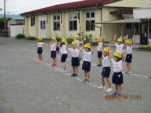 「夏の交通事故防止運動出発式」で行ったことを園庭で披露しました。