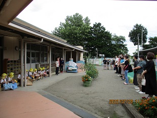 「まん延防止等重点措置」の延長を受け、例年実施しております保育参観の持ち方の変更にご理解いただき感謝いたします。22日に分散型保育参観の計画表を配布しました。第一希望を優先に計画表を作成しましたが、思い通りにならなかった保護者の皆様のご理解に感謝いたします。参加人数を踏まえ三密を考え計画表を作成したことにご理解下さい。参加に際しましては、配布しました健康確認票の提出をお願いいたします。