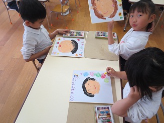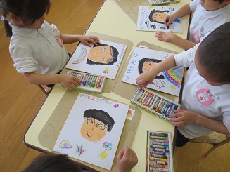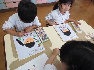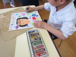 夢中で色塗りしていました。その真剣な顔に・・・。