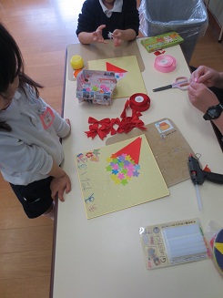 お母さんに感謝の気持ちで手作りのプレゼントを作っています。