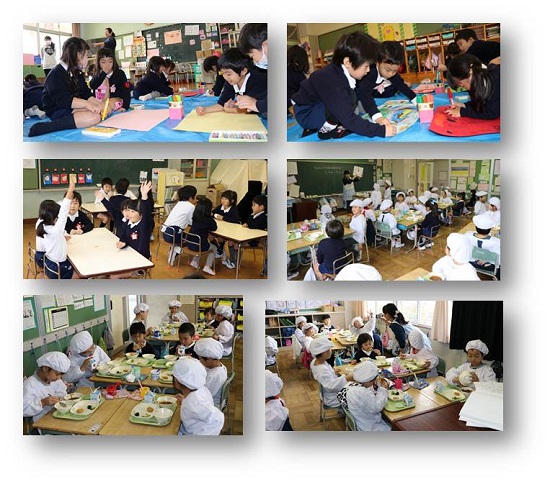 今日はあいにく小雨模様でしたが、年長児は上柴西小学校で1年生と給食体験を行いました。子どもたちははじめ緊張したようですが、1年生のリードで楽しい給食体験になりました。上柴西小学校の皆さんありがとうございました。