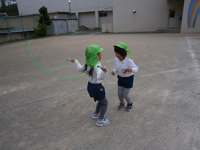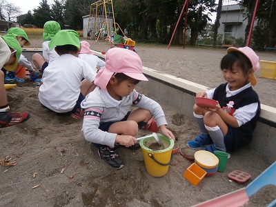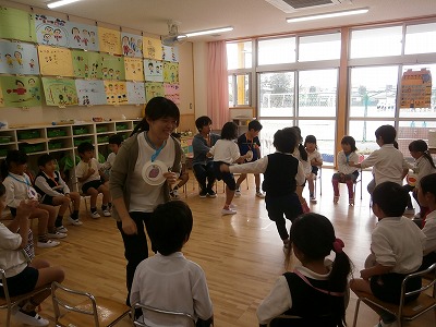 さくら組は、秋のものをみんなで考え、「フルーツバスケット」ならぬ「秋バスケット」をしました。ゲームをする中から、子どもたちの様々な工夫や、アイディアが見られ、楽しい時間を過ごすことができました。