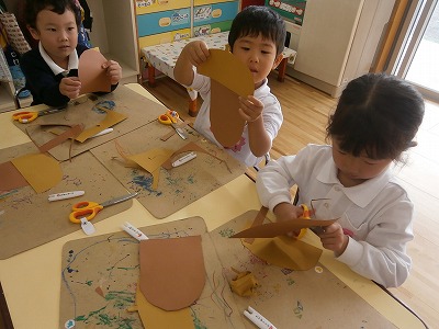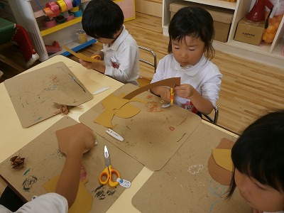 うさぎ組は、ドングリ製作をしました。ハサミで切ったり、のりで貼ったり、かわいいどんぐりができました。
