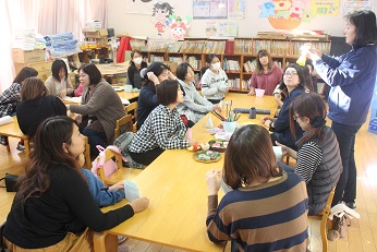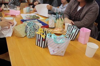 アルミ缶回収の日は、保護者交流会の「いってみんべぇ会」です。今日は、折り紙のバッグ作りをみんなで行いました。和気あいあいとお話を楽しみながら、1時間ほどを過ごしました。進級や進学を意識し始めるこれからの時期、お母さん同士でいろいろと相談しあえたり、愚痴をこぼしあえる集まりになればいいなと思います。