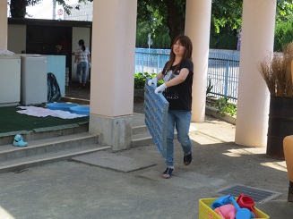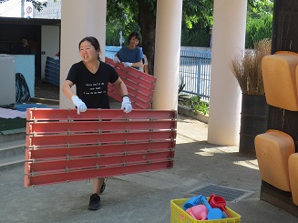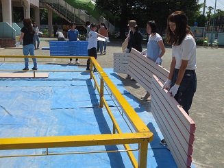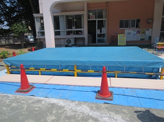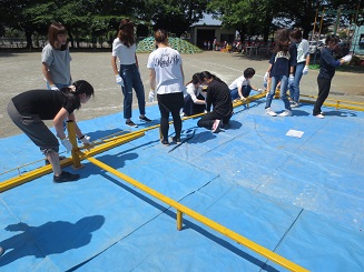 理事会終了後プールを設営しました。さすが、試行錯誤で時間より早く無事完成しました。