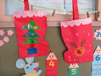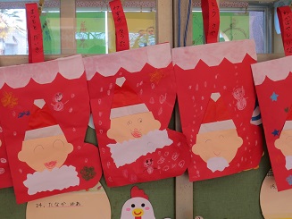 幼稚園ではお飾りをつくり、クリスマスの雰囲気をだしつつ夢の世界へ・・・。