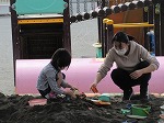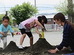 日差しを遮るよしずの下で砂場遊びです