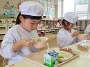きなこ揚げパン  春キャベツとジャコ・チーズのサラダ