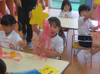 きりん組さんの流れ星づくりでは、きらめく夜空に輝くような大きな流れ星が出来ました。