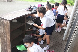 9月8日(木)、台風13号接近にお天気を心配した今日ですが、雨量も大したことなく安心しています。園児たちは室内で、運動会の練習をしたり、ポスター作りをしたりしています。しか組さんは、教室やくつ箱のおそうじをしてくれました。遊びや活動のあとのお片付けや給食の当番活動、少しずつ生活のなかで覚えていくのだと感じます。楽しい遊びのなかのおそうじです。でも「働くこと」キャリア教育の大切な一歩です。