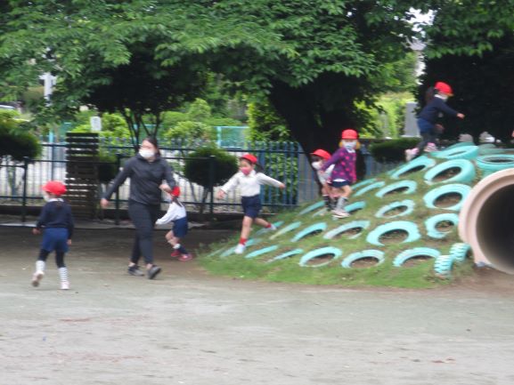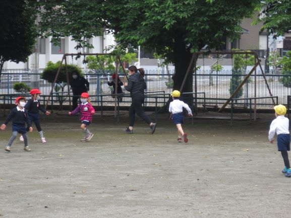 園庭で走り回ったり、だんご虫を探したり、
