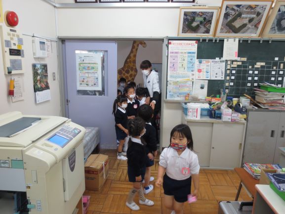 お部屋を見学したり、きりん組さんは朝顔の種まきました。みんな一生懸命でした。
