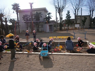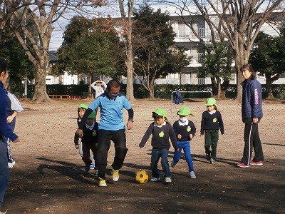 さくら組は、ボール遊びをしました。すっかりとたくましくなった男の子、ルールをよく守って活動する女の子、回数を重ねるたびに、成長する姿が見られます。
