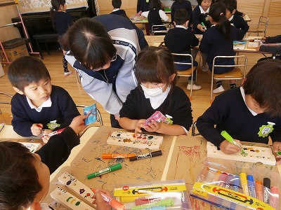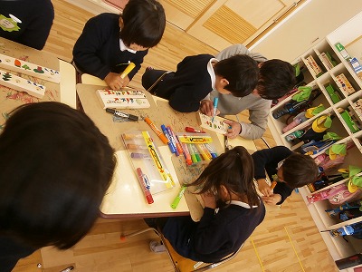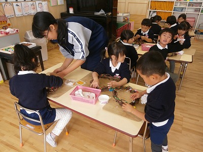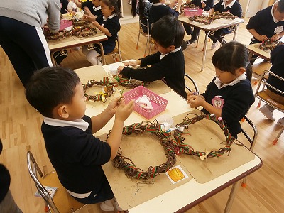 うさぎ組は、リースに飾りを付けました。ボンドを使い、慎重につけている姿が見られました。