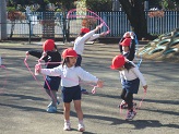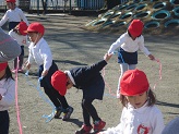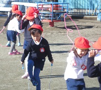 さくら組きりん組さんも二学期のまとめ最終段階、最後までしっかりとまとめていきます。きりん組さんが縄跳びの練習を始めました。三学期にも続けていきますが、今日は先生に教えてもらいながら頑張っていました。少しでも跳び方のコツがわかると、冬休みも自分で出来るかなぁ