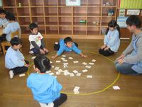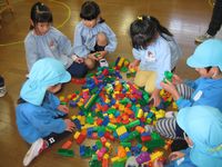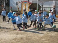 2月9日 花園保育園に出かけていき、花園保育園、エンゼル保育園のお友達と一緒にあそびました。年長さん同士の交流会を目的としておこないました。みんな一緒に4月には花園小学校へ入学するお友達です。園庭でドッチボールや遊具であそびました。お部屋の中を探検したりし、かるたやブロックで仲良くあそびました。あっという間に時間が過ぎお別れの会をして楽しい時間が終了しました。また、一年生のお部屋で会えますね。よろしくお願いします。