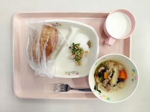 ソイ丼 かきたま汁 バリバリサラダ 牛乳