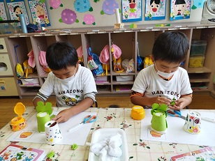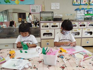 ハサミと糊を使って、頑張って作りました。
