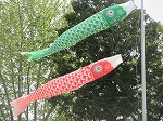 右に左に尾をふって鯉のぼりが自由に泳ぎ回る姿を