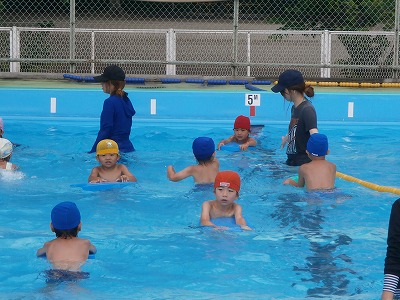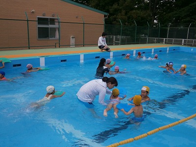 その後うさぎ組は、七夕飾り作りをしました。さくら組は、お昼ごはんの後、小学校のプールで遊びました。
