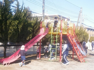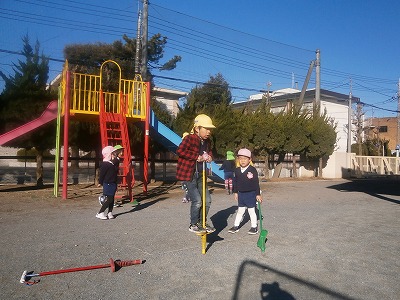 今日も天気に恵まれ、戸外で楽しく遊ぶことができました。お兄さん、お姉さんに遊んでもらえて、嬉しかったようで、お別れをするときに、「もうおしまいなの?」と残念がっている姿も見られました。