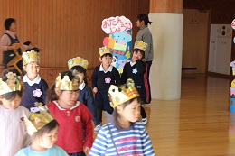 1月24日(火)は、給食もお誕生日特別メニューの日です。みらい幼児園おかべとおかべ幼稚園、初めての合同お誕生日会を行いました。1月生まれのお友だちは全部で16人、大勢の前で「お名前は?」「大きくなったら何になりたいですか」という先生からの質問に元気に答えていました。みんなで季節の歌を歌って、誕生日おめでとうの歌を歌いました。最後にお友だちからプレゼントを渡しました。穐山園長先生からの「今日は初めていっしょに誕生日を祝いましたが、どうでしたか」という問いに「楽しかった」という答え。みらい幼児園おかべとおかべ幼稚園も、一歩一歩前に進みます。笑顔をより多くのお友だちと分けわえるよう工夫していきます。