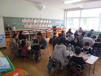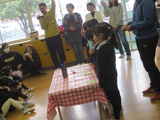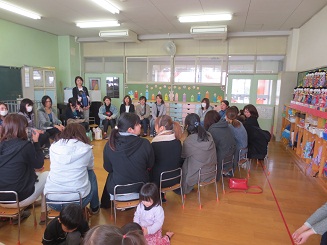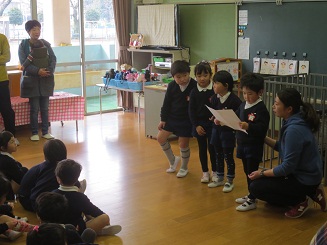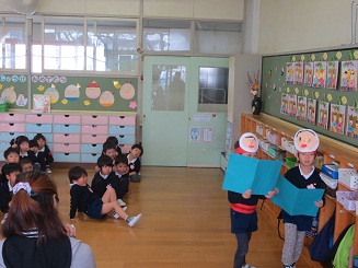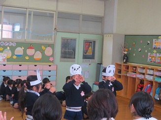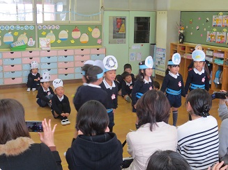 保育参観日、きりん・さくら組がそれぞれ1年間のまとめの発表会です。
