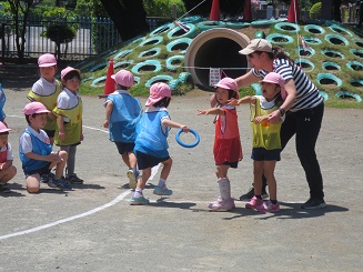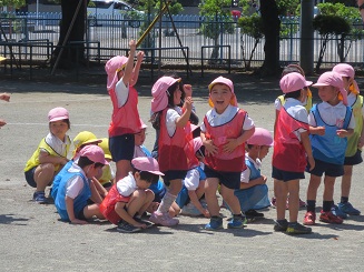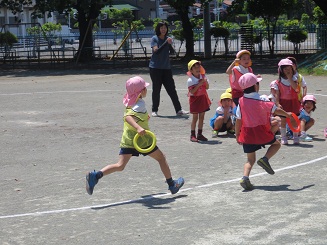 どのチームも、どの子も本気で勝負していました。勝負はこうでなくては・・・。大切です。そして、きりん組さんの声援も大変よかったですね。さあ、次はどうなるか、みんなの作戦も考えていきましょう。